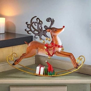These traditional Christmas ornaments for the home on a rocking Rudy reindeer is the perfect way to add festive holiday cheer to your home. With its Free Standing curved design, this deer bedroom decor will sit on any flat surface and gently bob back and forth when pushed. The reindeer Christmas accessories are sure to complement any Christmas decor and guaranteed to be the best in show!