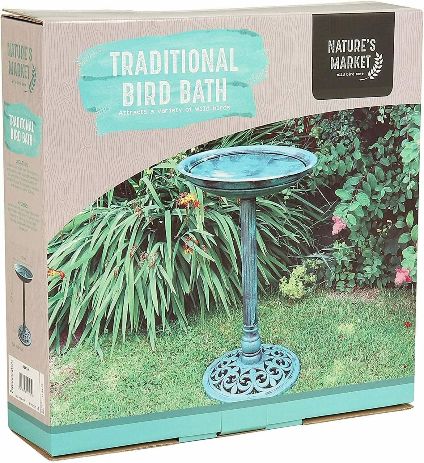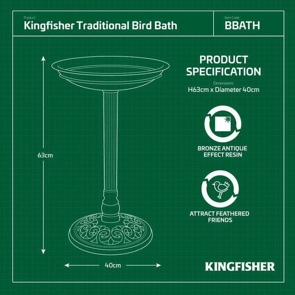 Traditional Freestanding Bird Bath Tall Weatherproof Resin Garden Ornament