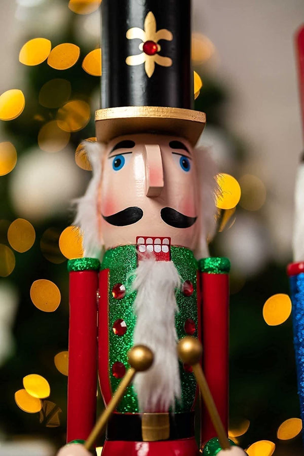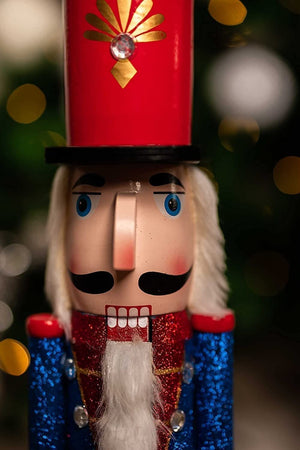 High Quality - Crafted with care and attention to detail from strong and hardwearing wooden construction, this stunning nutcracker ornament is also hand painted! Finished in bold primary colours and with intricate glitter and golden detailing all over, this standing ornament is sure to spread festive cheer wherever its placed!