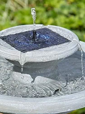 Garden solar water feature fountains have 2 tier cascade that creates a peaceful ambience with the sound of water trickling in your garden space and add a bit of water to the pool, small wild birds fly in and use it for a bath. This solar-powered water fountain will recycle the same water over and over again, so you don't need to worry about water replenishment.
