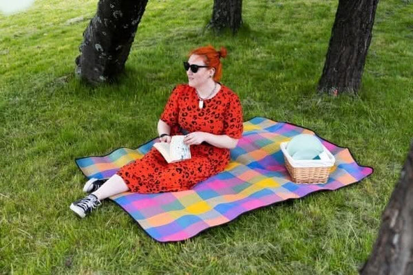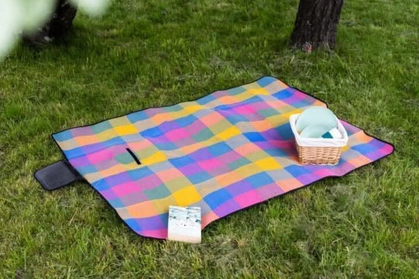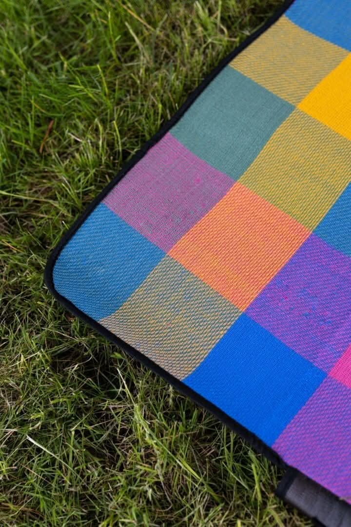 Eat your freshly made picnic in style with this large travel picnic blanket in a multicoloured design!
