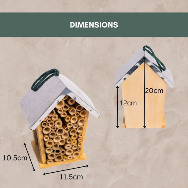 EASY-INSTALLATION – These insect houses can be free-standing within the garden or easily mounted to any fence or tree, allowing them to attract and accommodate multiple species of butterfly, moth, ladybird and solitary bees. Naturally improve the health of plants in your yard by attracting beneficial insects! The pointed roof has been fitted with sheet iron to protect the bee cottage from rain, so less moisture enters the wood.