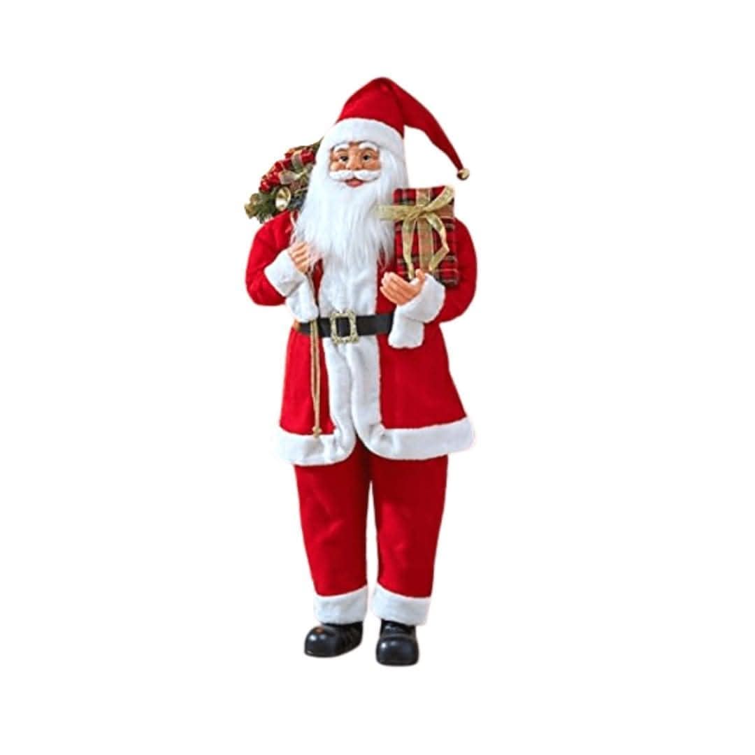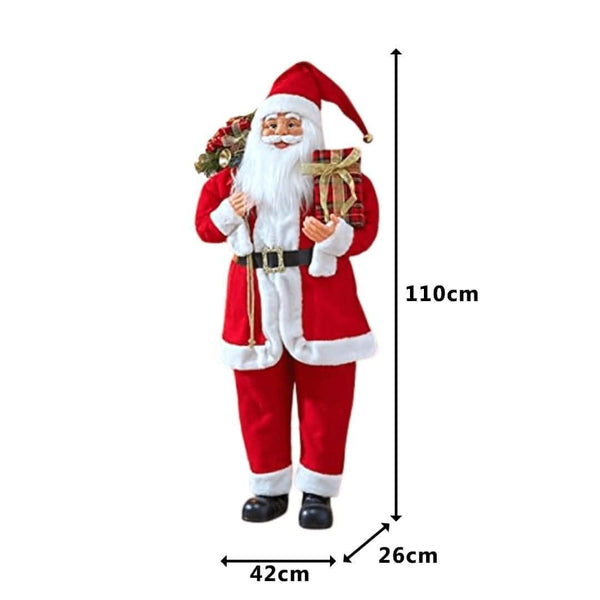Bring festive warmth to your home this winter with our XLarge Santa Claus Figure. Standing 110cm tall, this free-standing decoration features the classic look of Father Christmas, complete with a bushy white beard, rosy cheeks, and charming spectacles. Holding a sack of gifts and a little present, it adds a joyful, traditional touch to any room. Perfect for creating a cozy, magical holiday atmosphere wherever you place it.